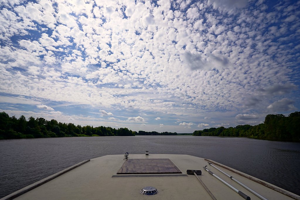 Durch die Müritz-Havel-Wasserstraße ging es zu abgelegenen Orten wie Buchholz und Mirow und zu weiteren Seen wie dem Zotzensee, Vilzsee und Peetschsee. Überall befinden sich kleine Buchten, in denen man perfekt ankern kann. Völlig abgelegen kann man die Natur genießen oder vom Hausboot aus eine Runde im kalten Wasser schwimmen.
