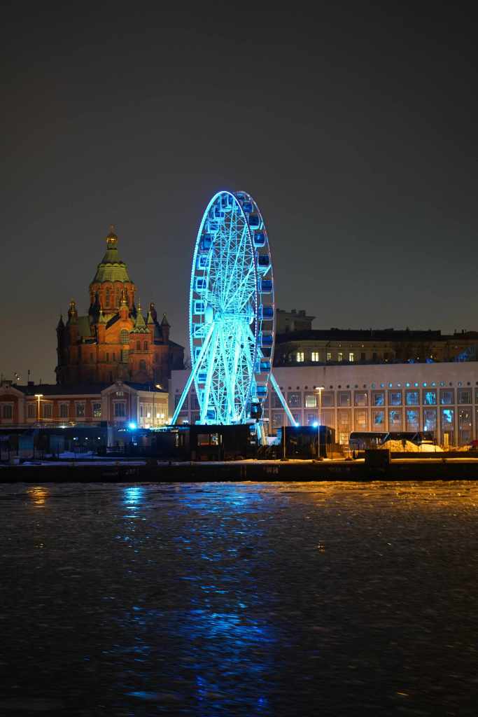 Wir empfehlen bei einem Besuch von Helsinki das Riesenrad, das am Hafen steht und einen fantastischen Panoramablick über die gesamte Stadt bietet. Es gibt auch SkySauna-Gondeln, in denen man gleichzeitig saunieren und Sightseeing betreiben kann.