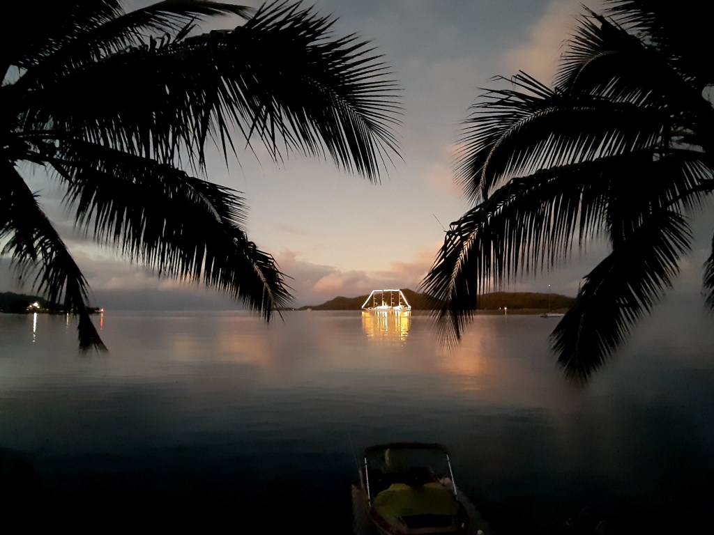 Gleich nach der Landung darf ich die ersten Erfahrungen mit der polynesischen Art machen. Thomas sagte mir beim Abschied noch: keine Sorge, du wirst am Flughafen abgeholt. Am Flughafen wurden alle Passagiere auf Schiffe verladen nur ich blieb ohne Anschluss stehen. Die Männer der Fähre wollten mich mitnehmen, aber ich lehnte dankend ab, da ich ja abgeholt werden sollte. Von wem? fragten sie mich erstaunt. Als ich die Unterkunft nannte tauschten sie sich auf tahitisch aus und winkten mich an Bord. Besser mitfahren dachte ich, was letztendlich eine wirklich gute Idee war.