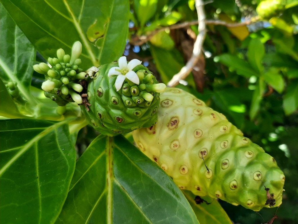 Noni-Frucht – Geschmack und Geruch sind ähnlich dem von Hand- oder Gorgonzolakäse.