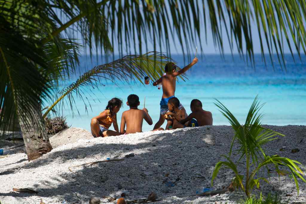 Das Leben auf den Atollen ist harsch, unwirtlich und zugleich paradiesisch. Es wächst kaum etwas, es gibt kaum Obst und Gemüse und das einzige Süßwasser wird durch den Regen gewonnen. Das macht Wasser, in einer Umgebung die vor Salzwasser strotzt, zu einem raren Gut, das nicht selbstverständlich zur Verfügung steht. Daraus ergeben sich alltägliche Probleme, wie das Waschen von Wäsche, Geschirr oder auch einem selbst. In der Trockenzeit von April bis Oktober kann es passieren, dass kein Wasser mehr zu Verfügung steht, dann muss das Geschirr in der Lagune gewaschen werden. Je nach Größe und vor allem Wassertiefe der Lagune kommen einmal pro Woche oder auch nur einmal pro Monat Versorgungsschiffe mit notwendigen Waren aus Tahiti.