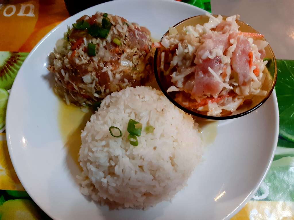 Vom Essen gibt es gar nicht so viel zu berichten auf den Atollen, weil es da ja nicht viel gibt. Sie haben Fisch und Reis und Kokosnuss. 🥥🍚🐡