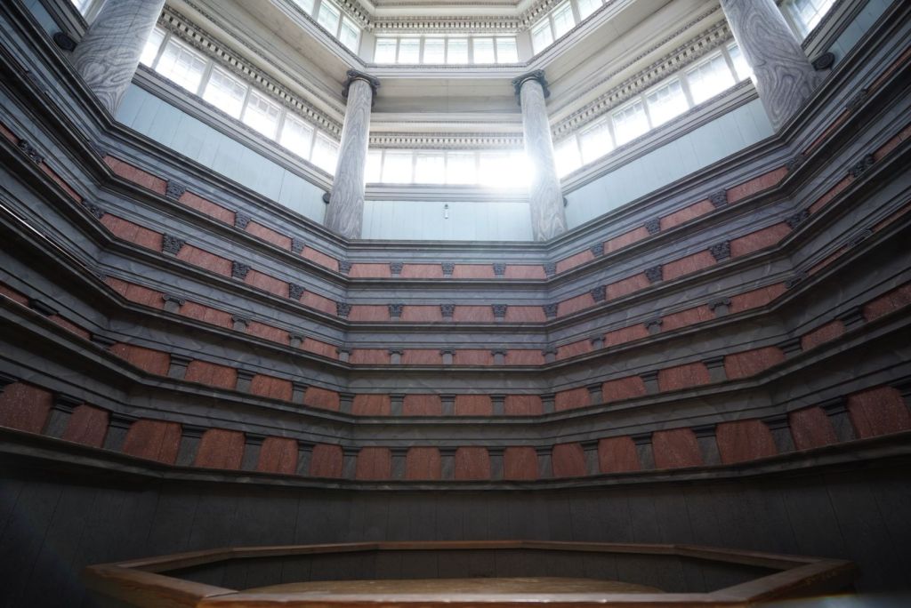 Der Anatomielehrsaal von Olof Rudbeck unter der Kuppel des Gebäudes hat einen runden Lehrsaal mit einem Seziertisch und Platz für 200 Zuschauende. Früher wurde nicht nur aus medizinischen oder wissenschaftlichen Gründen seziert. Es war auch eine Zur-Schau-Stellung des menschlichen Körpers für ein öffentliches Publikum.