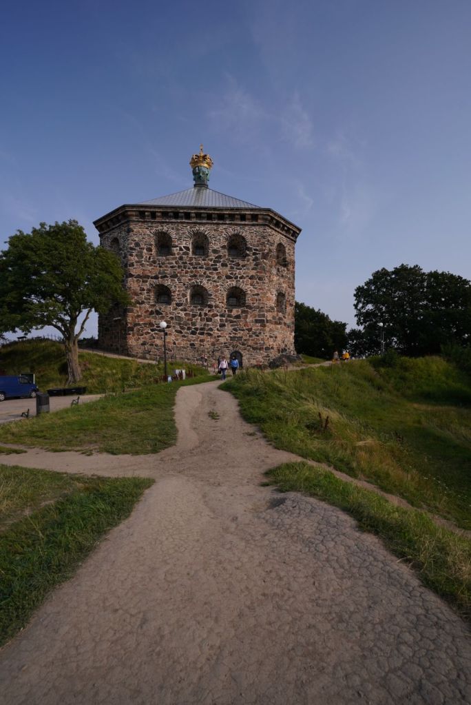 Der steile Weg hoch zu dem achteckigen Turm der Festungsanlage Skansen Kronan wird belohnt mit einem Blick über die Dächer Göteborgs.