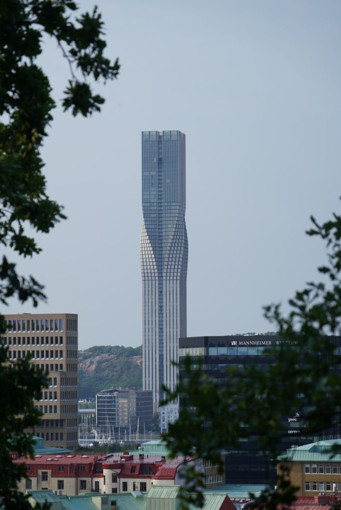 Von dort lässt sich Göteborgs Wolkenkratzer Karlatornet, der mit 247 Metern das höchste Gebäude der nordischen Länder ist, einfangen. Bis 2026 soll das Areal Karlstaden fertig gebaut sein und neben Karlatornet sollen noch drei weitere markante Hochhäuser Namens Cassiopeja, Auriga und Virgo gebaut werden für über 2000 Wohnungen.