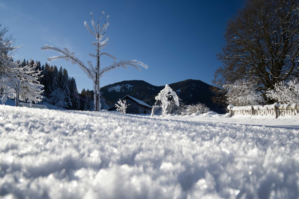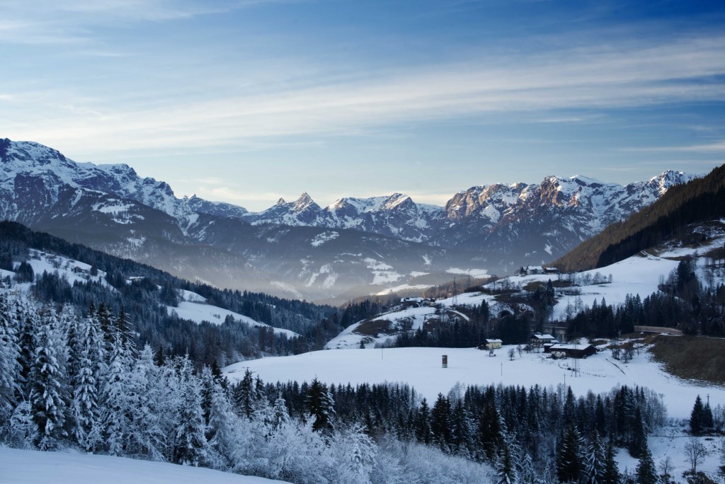 Hüttau liegt in den mittelgebirgigen Zwischenalpen umrahmt von Hochkönig und Dachstein. Zwei imposante Gipfel, die uns eine fantastische Aussicht bei herrlichem Wetter und klirrender Kälte beschert haben.