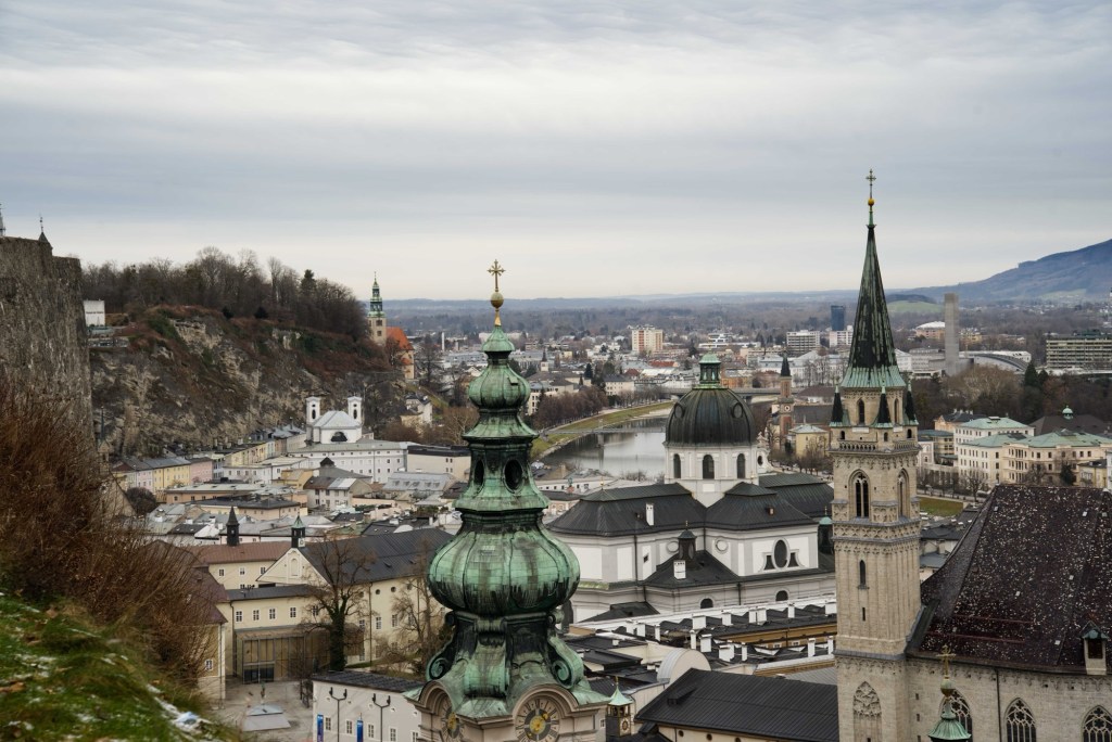 Für die der Versuch ausreichte gab es andere Ziele. Dabei ist man zu neunt selten allein. Wir haben Salzburg einen Besuch abgestattet und dort interessante Architektur und Innenausstattung bestaunen können. Von der Festung aus hat man einen wunderschönen Ausblick über Salzburg, die vielen Rundtürmchen und imposanten Dächer der Stadt.