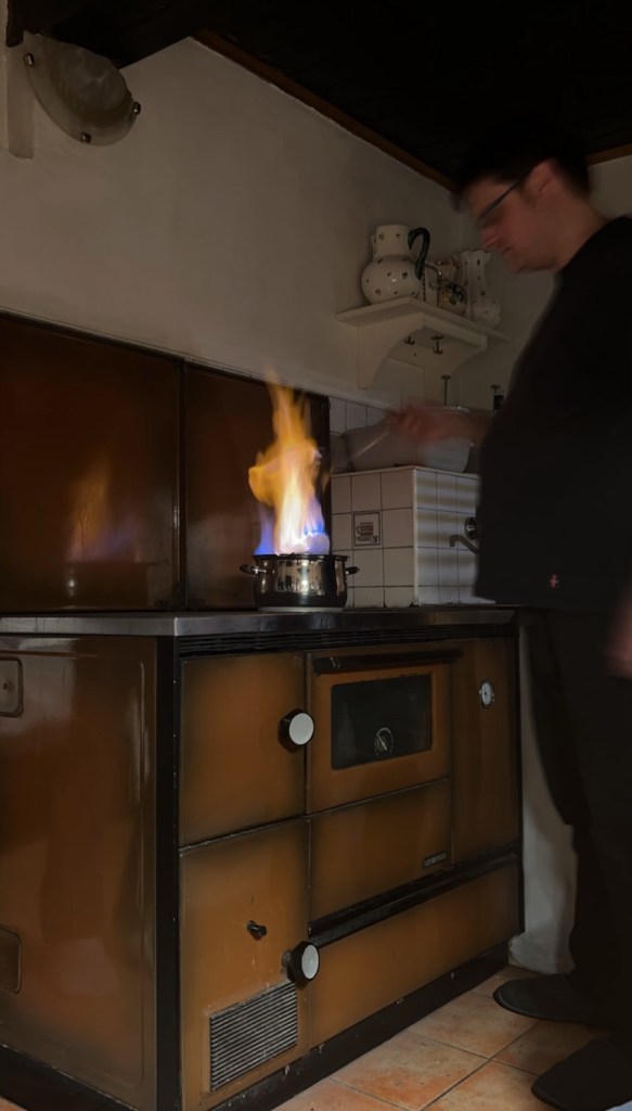 Tolle Landschaft, cooler Kühlschrank und ein Meisterkoch beim flambieren … schöner kann es nicht sein! So geht Winter!