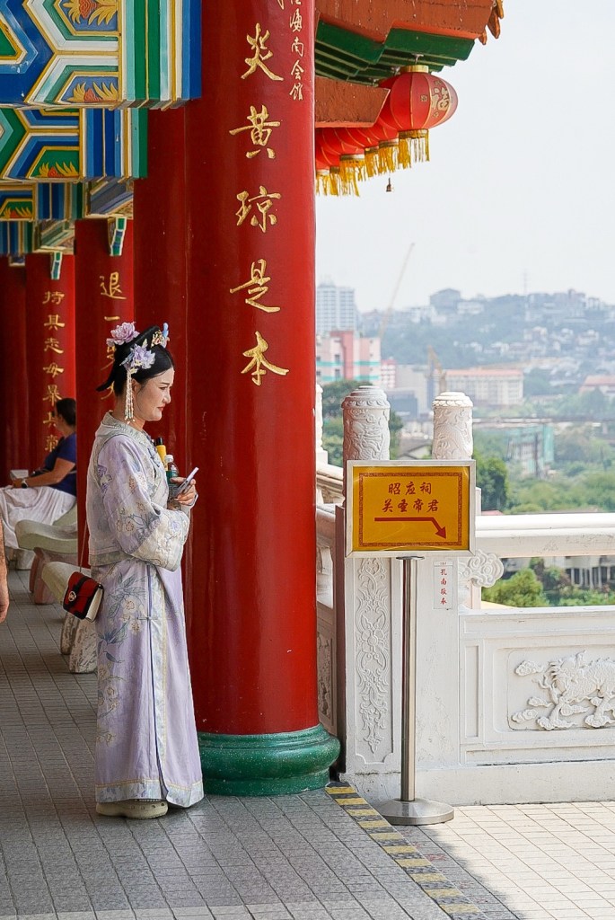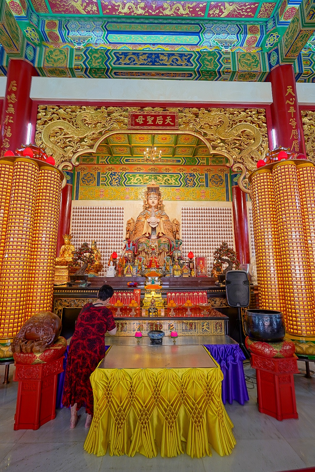 Der Thean Hou Tempel ist ein sehr beeindruckender, mehrstöckiger chinesischer Tempel, der Göttin des Himmels gewidmet mit tollem Ausblick auf Kuala Lumpur. Der buddhistische, taoistsiche und konfuzionistische Tempel liegt auf einem Hügel und allen Beschreibungen im Reiseführer zum Trotz sind wir nicht mit dem Taxi nach oben, sondern zu Fuß. Das war sehr steil und schweißtreibend, aber es hat sich gelohnt. Es hatte aber leider auch Auswirkungen auf unsere darauffolgende Besichtigung, bei der wir – auch aus Gründen der Erschöpfung – einen echt blöden Fehler gemacht haben …