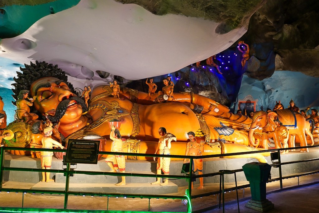 Den ganzen Tag unterwegs in der malaiischen Sonne und schon recht erschöpft wollten wir beim Austreten aus der Höhle dem Strom an Menschen folgen. Ein tropisches Gewitter war ebenfalls im Anmarsch und wir hatten ein Ziel – nicht voll in den Regen geraten. Da dachten wir noch, dass uns zum Glück rechtzeitig aufgefallen sei, dass wir nicht der Menschenansammlung hinterherdackeln dürfen, sondern die richtige Abzweigung zum Bahnhof nehmen müssen und zum Glück haben wir es ganz kurz vor Ausbruch eines heftigen Monsuns in die Bahn geschafft. Leider hat sich dann im Nachhinein herausgestellt, dass wir lediglich eine der kleineren Höhlen besichtigt haben und die eigentliche Haupthöhle verpasst haben. Nun lässt es sich nicht mehr ändern. Vielleicht hilft die Geschichte jemandem, der einmal in die gleiche Situation gerät. Im Folgenden seht ihr die Bilder aus der Höhle des Ramayana.