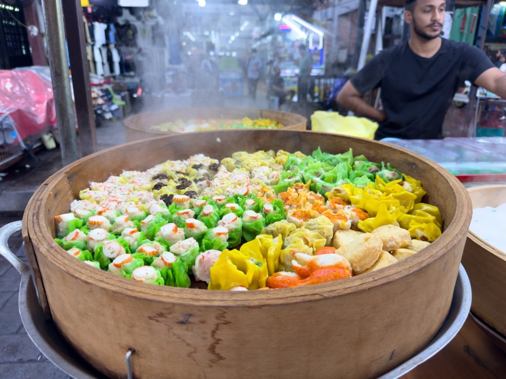 Ein großer Speisesaal unter freiem Himmel bietet die Jalan Alor, eine Straße auf der rivalisierende Anbieter versuchen schreiend Passanten zu ködern. Es gibt hier alles: von Satay, über Austern bis hin zu Durian. Und ja, wir haben die Frucht nun endlich auch gegessen. Thomas ist nach wie vor fasziniert, wenn auch nicht begeistert. Mich schreckt es nach wie vor ab. Es schmeckt, wie ich im Vorfeld durch eine Nachricht meiner lieben Kusine aus Deutschland erfahren habe, nach Zwiebel und Frucht. Danke für den Hinweis, das hat mich ermutigt zu probieren. Es riecht tatsächlich schlimmer als es schmeckt. Einheimische haben uns berichtet auch die Bevölkerung sei bezüglich Durian gespalten – man liebe oder hasse es.