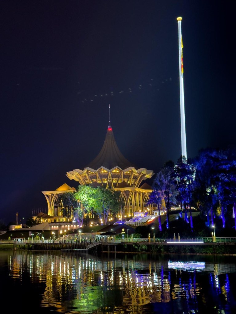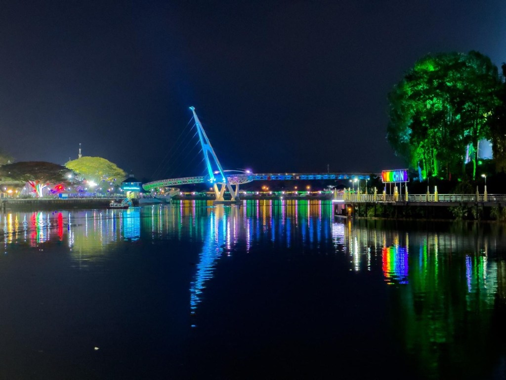 Eine einladende Promenade schmückt das Flussufer von Kuching und lädt zu Spaziergängen ein.