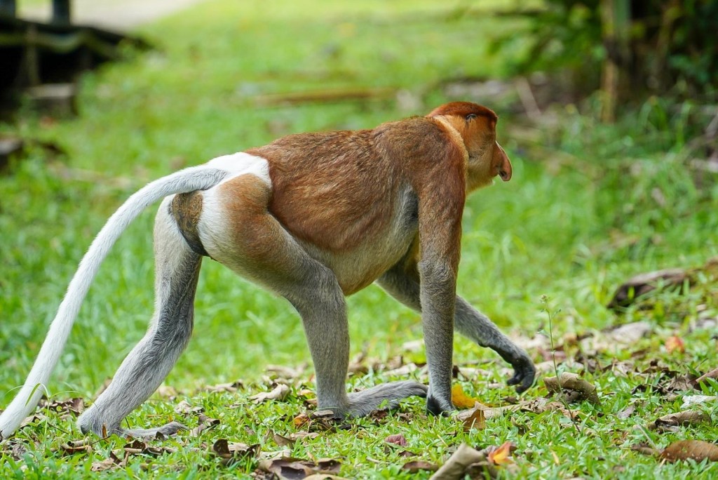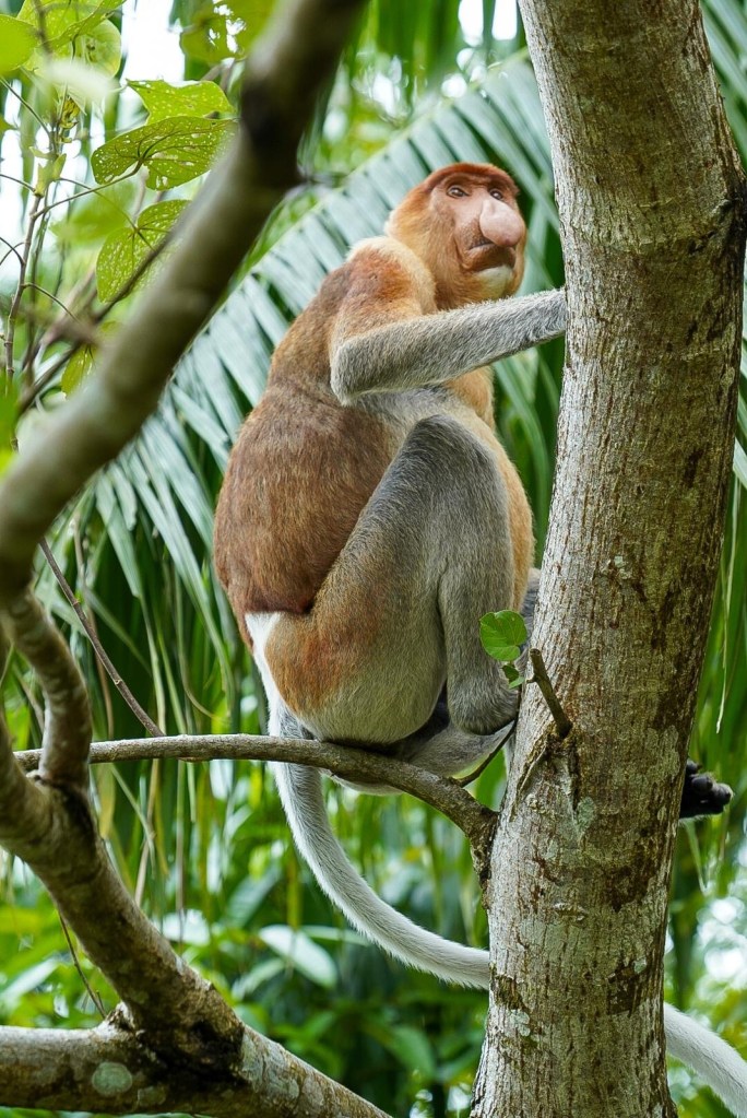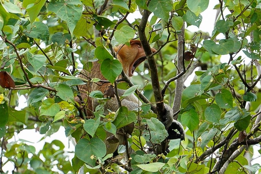 Die runden Bäuche der Nasenaffen beherbergen zwei Mägen, die mit Bakterien gefüllt sind. Diese helfen ihnen Nährstoffe aus der unverdaulichen Vegetation herauszulösen. Der Nasenaffe wird hier aufgrund seines menschlichen und witzigen Aussehens, seiner Haltung und der Weste, die er zu tragen scheint auch Dutchman genannt.