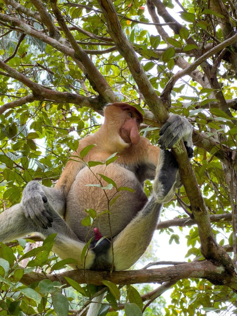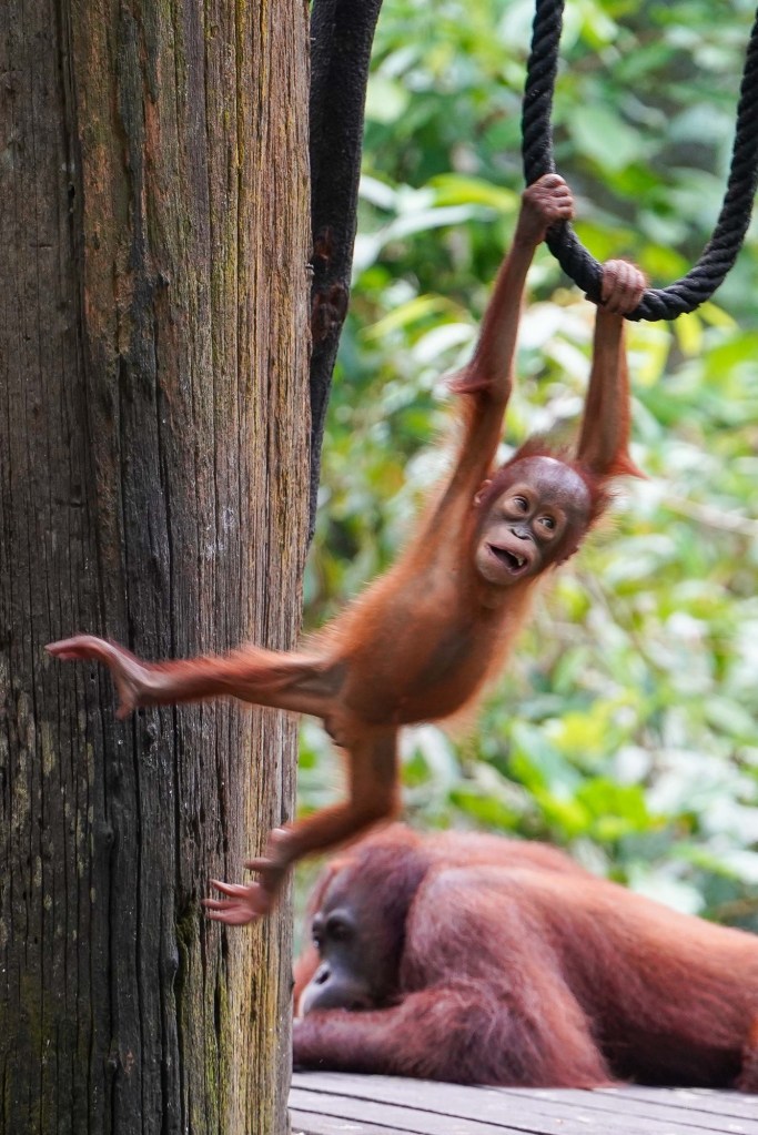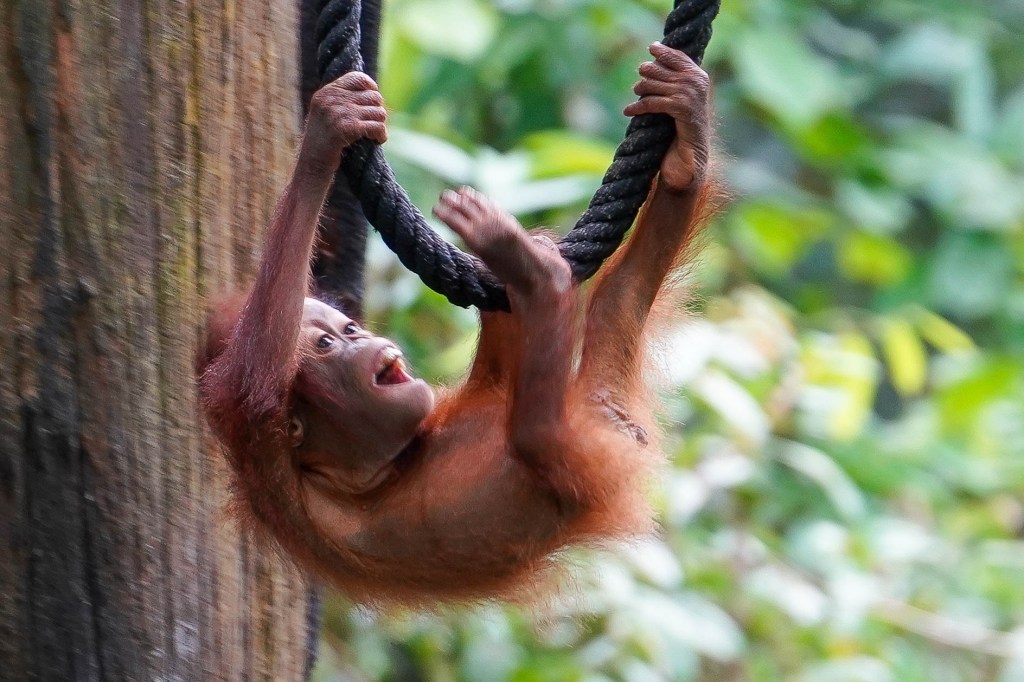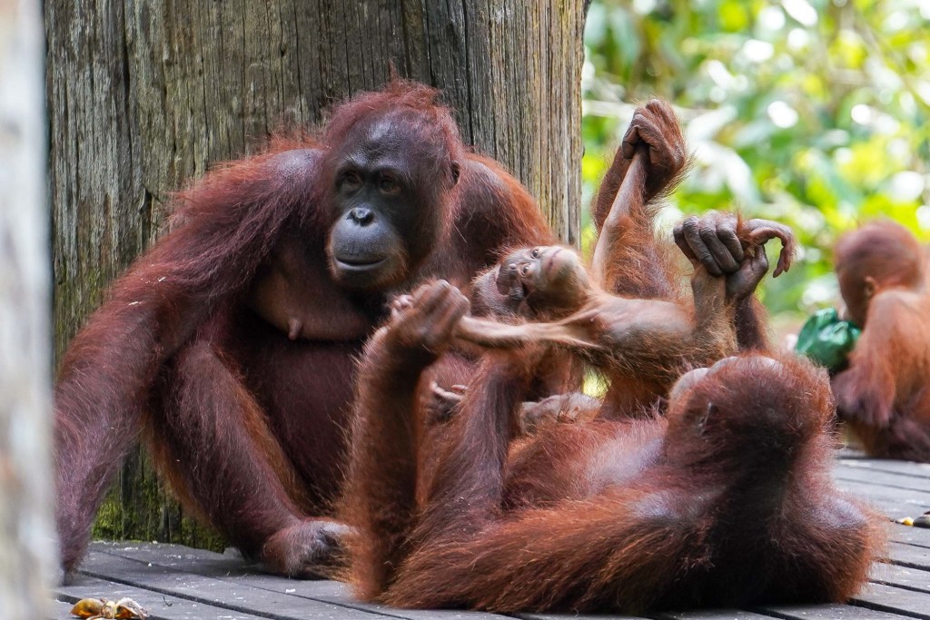 In Borneo sind auch Orang-Utans zu Hause, die man in ihrem natürlichen Lebensraum in einem Rehabilitationscenter beobachten kann. Orang-Utan bedeutet wörtlich Waldmensch, was ein Hinweis darauf ist, wie die indigene Bevölkerung diesem Affen gegenüberstand – sie wurden nie gejagt.